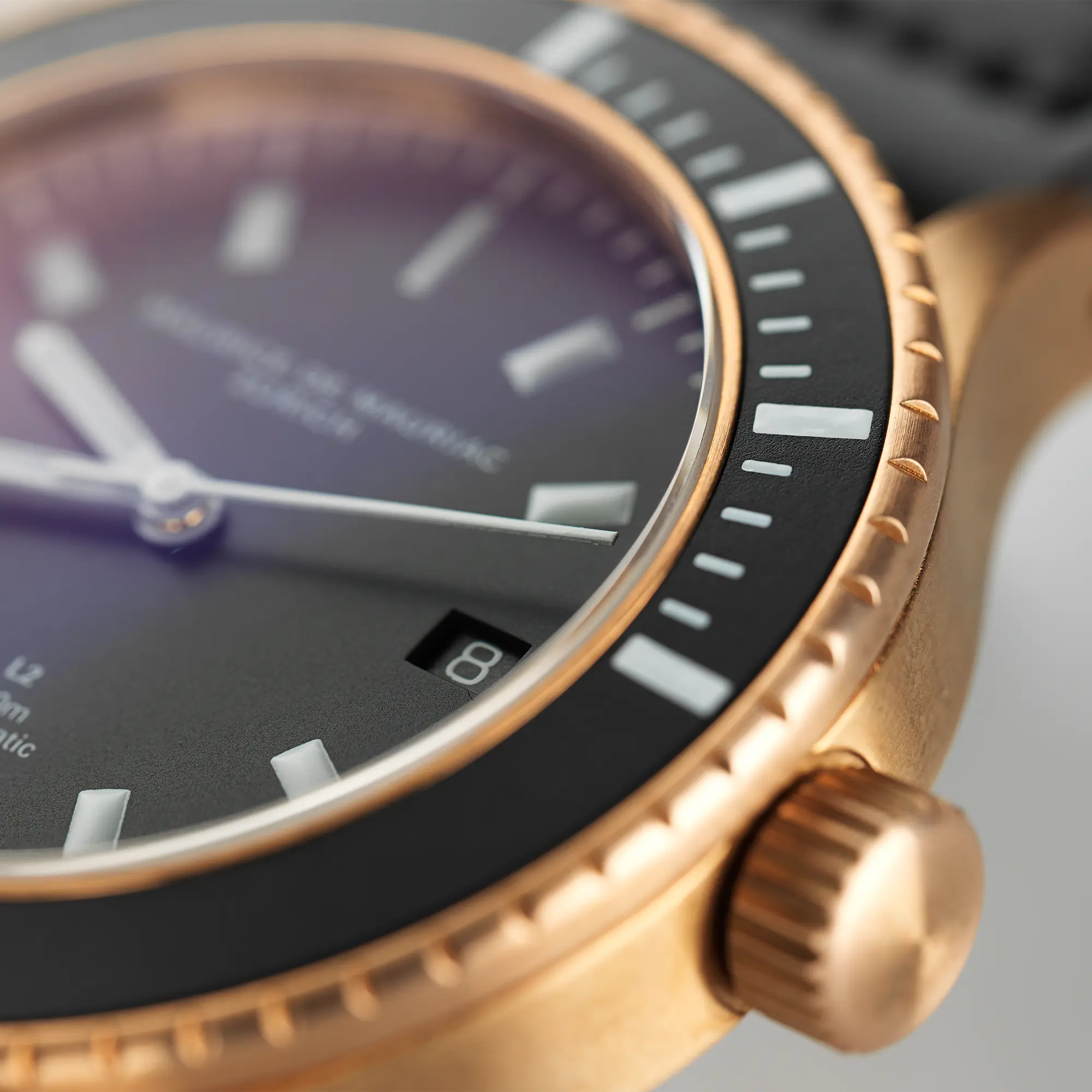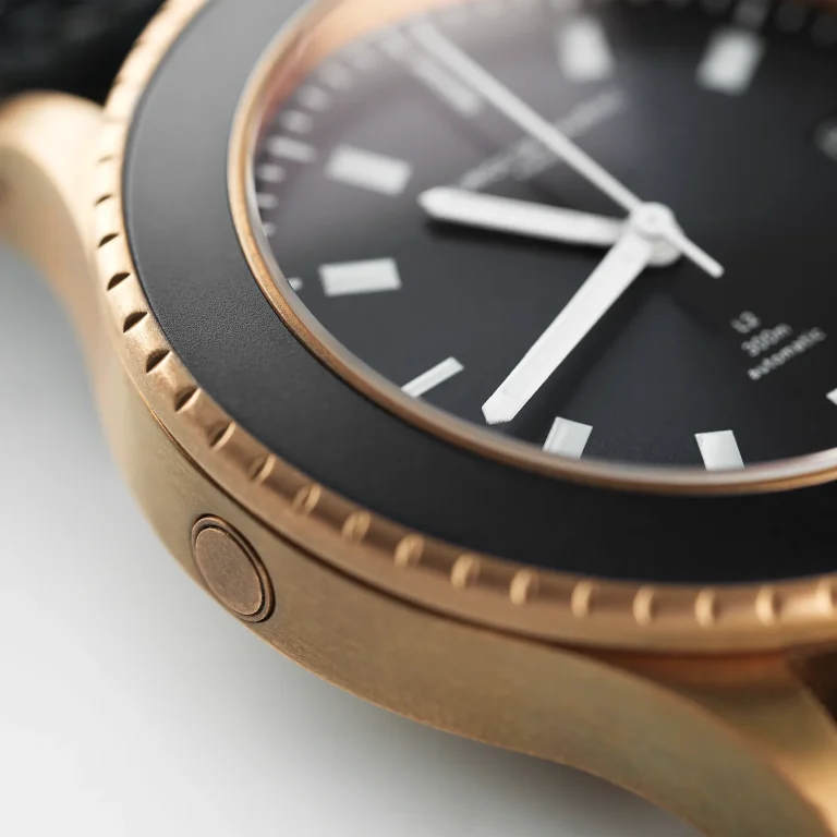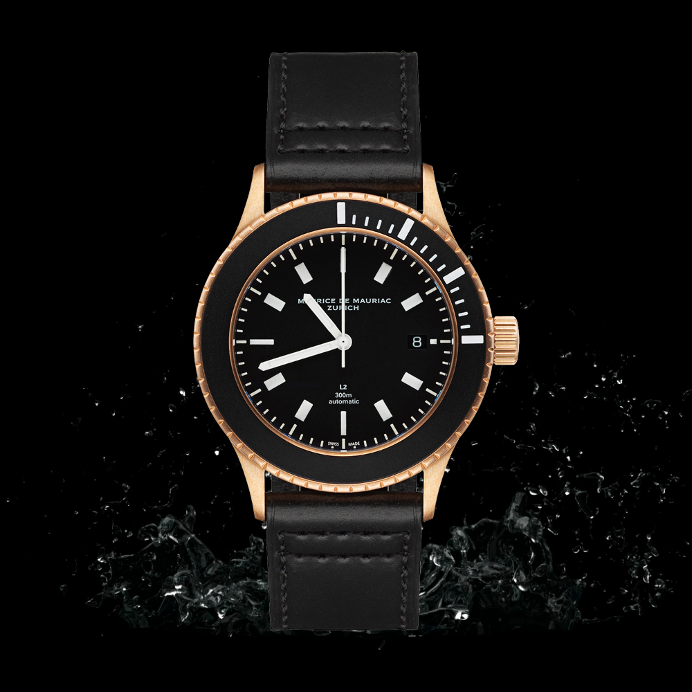 “The clear, unadorned lines of the L Series are perfect for a diver’s iteration, which is as much substance as it is style: waterproof to 300m, Zurich bronze case and a helium outlet valve are other features. What does that mean? Nothing less than the ability to make a long saturation dive without worrying that your sapphire glass will fall off when you finally reappear and relax.”