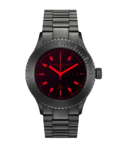 “The L2 is a diver’s watch that can withstand great pressure underwater. On land, it entices as an eye-catcher. The 316L stainless steel of the case with the diamond-like carbon coating reflects the light with sovereign hardness, the ETA 28.24-2 movement is highly reliable, the design by Fabian Schwaerzler is imbued with the values of the Bauhaus. And extraordinary, of course, is the red watch crystal, which makes the watch a minimalistic yet powerful statement piece. Typical of Maurice de Mauriac.”