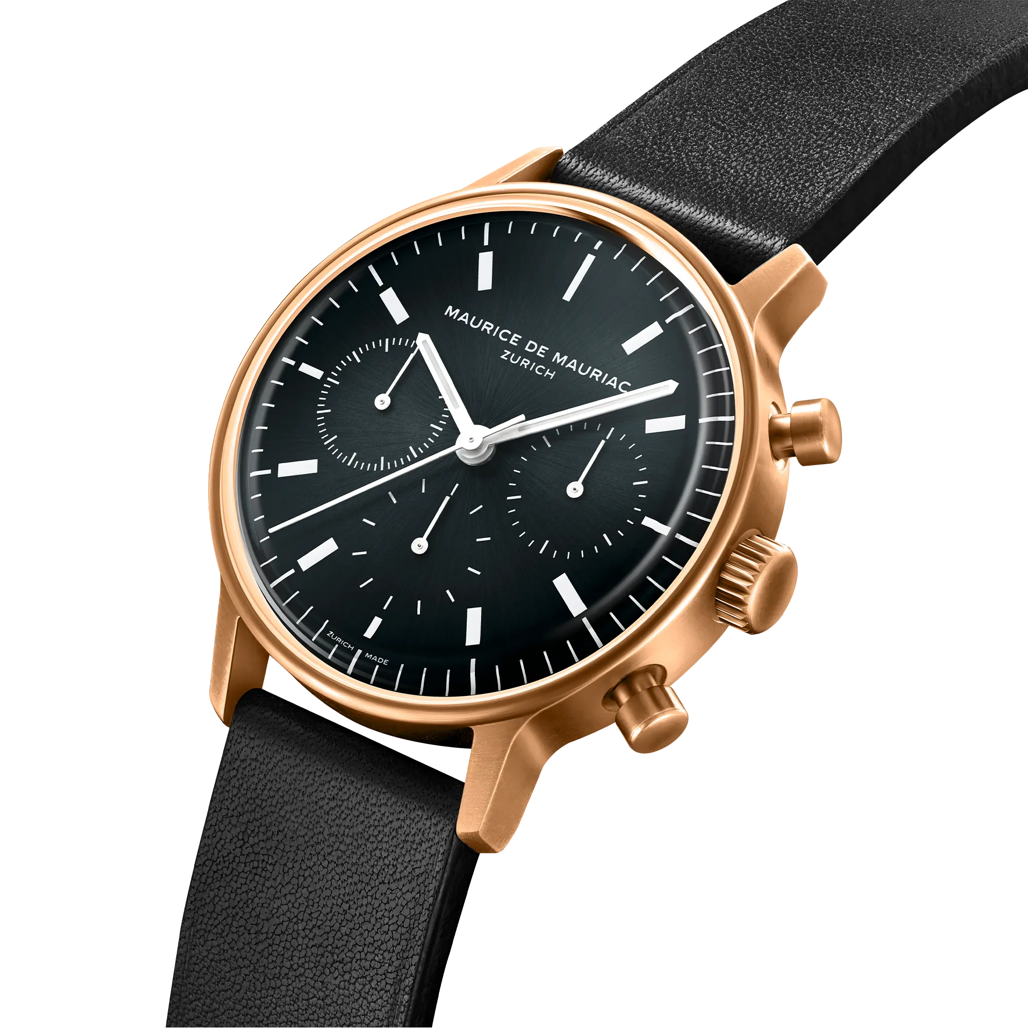 “The horizontal tri-compax layout, very popular among watch collectors, has on Schwaerzler’s work desk been reduced to lines – the raison d’être for the L series. “In design it is much harder to take away than to add. And you should not take away just for the sake of reduction, but to improve the function and the aesthetics”