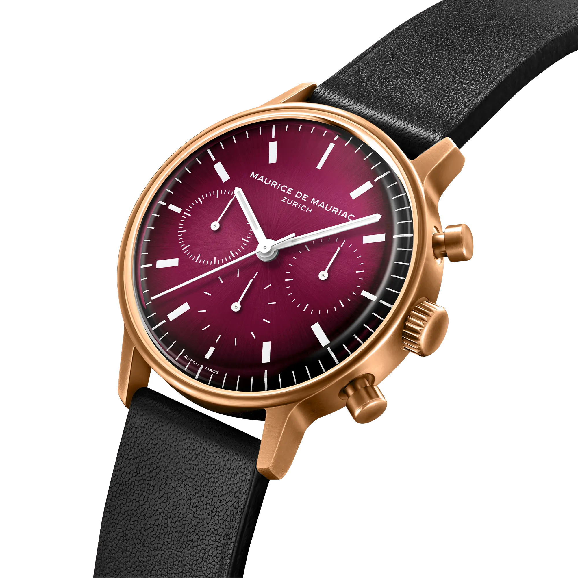 “The horizontal tri-compax layout, very popular among watch collectors, has on Schwaerzler’s work desk been reduced to lines – the raison d’être for the L series. “In design it is much harder to take away than to add. And you should not take away just for the sake of reduction, but to improve the function and the aesthetics”
