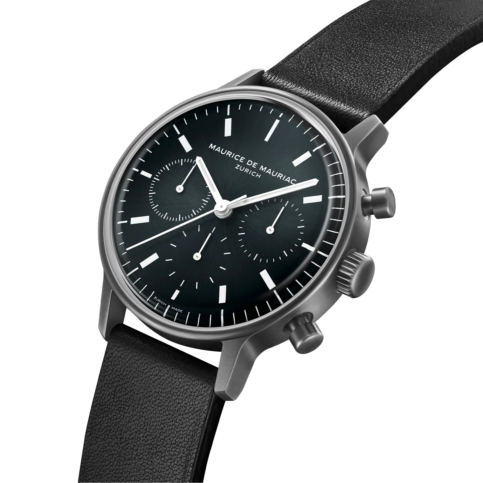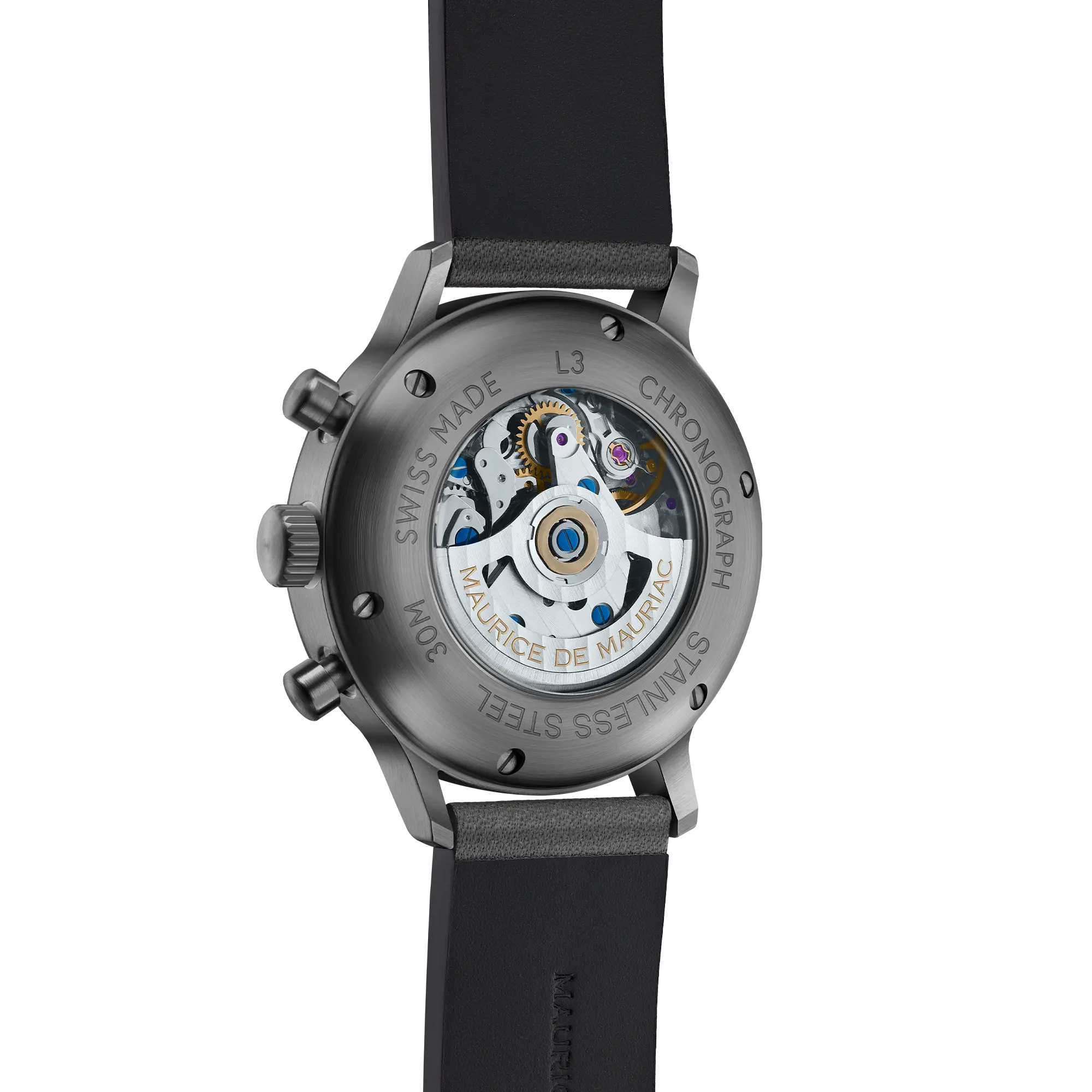 “The horizontal tricompax layout, very popular among watch collectors, has on Schwaerzler’s work desk been reduced to lines – the raison d’être for the L series. “ In design it is much harder to take away than to add. And you should not take away just for the sake of reduction, but to improve the function and the aesthetics”