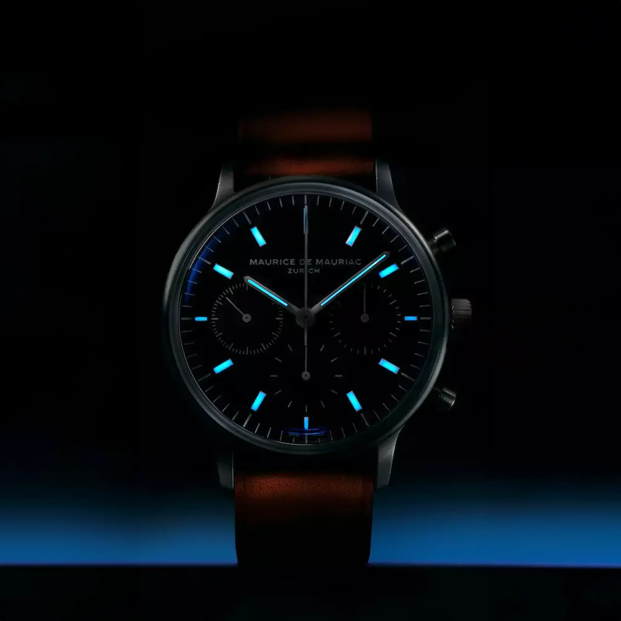 “The horizontal tri-compax layout, very popular among watch collectors, has on Schwaerzler’s work desk been reduced to lines – the raison d’être for the L series. “In design it is much harder to take away than to add. And you should not take away just for the sake of reduction, but to improve the function and the aesthetics”