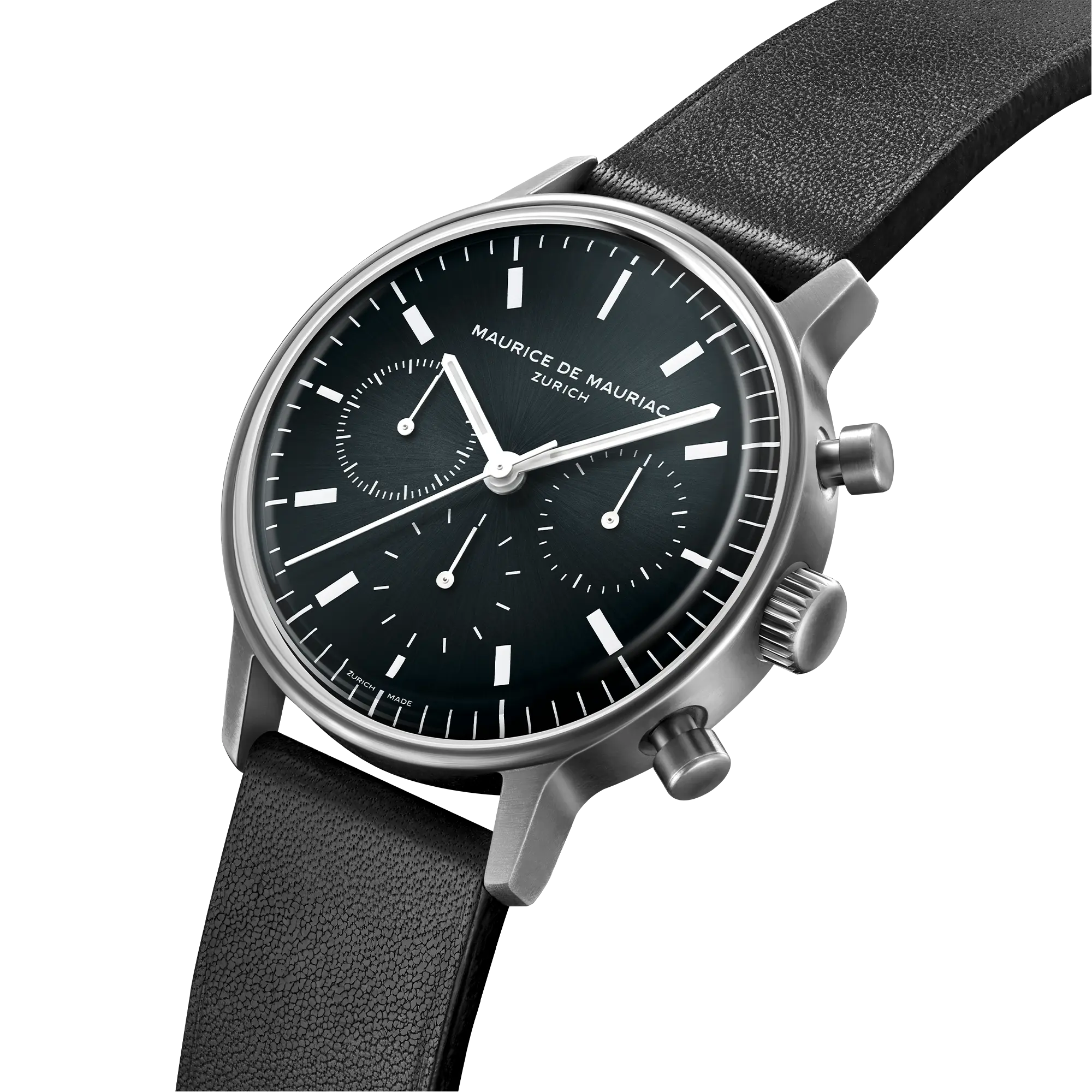 “The horizontal tri-compax layout, very popular among watch collectors, has on Schwaerzler’s work desk been reduced to lines – the raison d’être for the L series. “In design it is much harder to take away than to add. And you should not take away just for the sake of reduction, but to improve the function and the aesthetics”